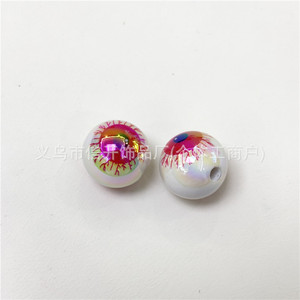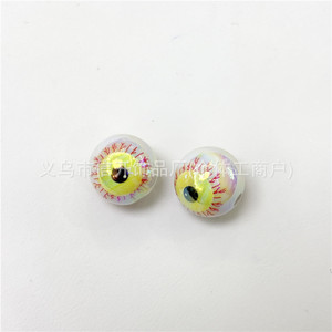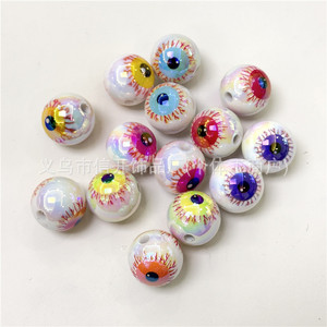通孔万圣节眼珠印花圆珠串珠笔手工diy饰品手机钥匙链包挂件材料