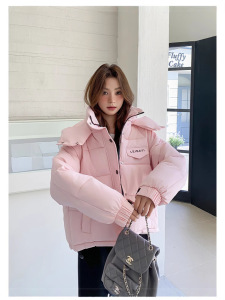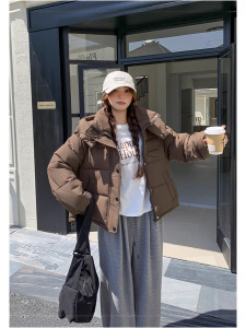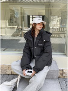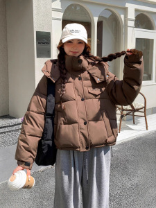 欧货短款羽绒棉服女2025年冬季新款时尚防寒连帽面包服小个子外套