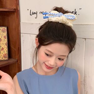 1#米白发圈蓝色格子发绳 发圈约11cm 发绳约19cm