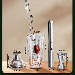 【6件套】400ml玻璃304雪克杯+21厘米304钢棒+304吧勺+冰夹+304钢量杯+滤冰器