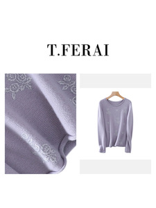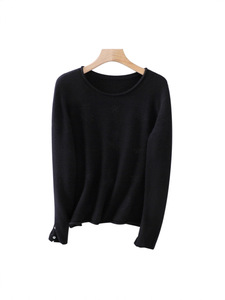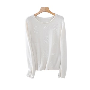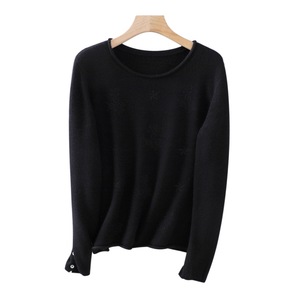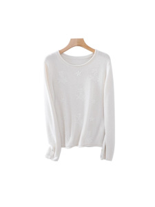 2025秋冬季新款羊绒女士通勤百搭气质显瘦减龄圆领长袖绣花上衣