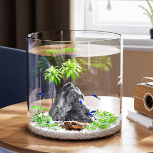 鱼缸客厅家用圆柱形金鱼乌龟加厚高透PET鱼缸小型桌面水体培器皿