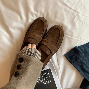 真皮懒人葡萄妈真皮英伦风乐福单鞋女小粗跟一脚蹬美新款拉德秋冬