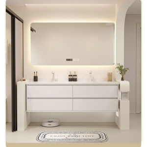 浴室柜简约组合双盆岩板陶瓷无缝一体洗脸盆卫生间洗漱洗手盆