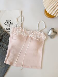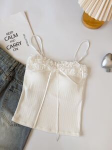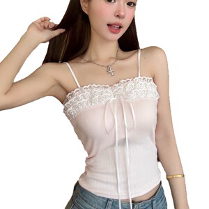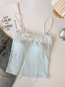 蕾丝拼接系带吊带背心女夏季修身美背外穿设计感辣妹白色内搭上衣