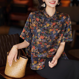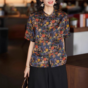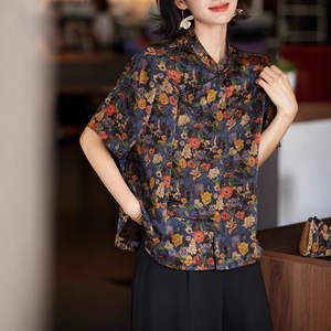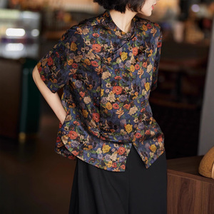 『山花烂漫处』28姆米重磅真丝香云纱!艺术油画印花新中式上衣