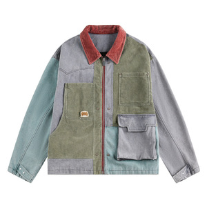 美式潮流潮牌美式复古拼接灯芯绒多色口袋撞色夹克男女工装外套男