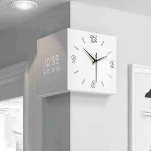 客厅转角时钟万年历电子钟2025新款双面挂钟创意壁灯拐角挂墙钟表