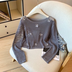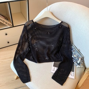 广州十三行高货爆款~镂空长袖针织衫慵懒宽松防晒衫独特绝美上衣