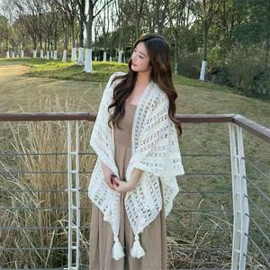 云南民族风扎染披肩度假针织斗篷女草原旅游拍照披风汉服旗袍外搭