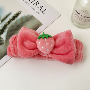 日韩可爱水果草莓蝴蝶结发带女生运动瑜伽束头带纯色跨境头饰发饰