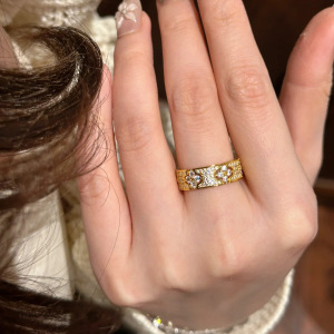 法式老钱风幸运四叶草满天星戒指时尚轻奢微镶满钻花朵排戒条戒女