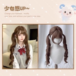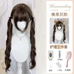 蜜茶灰粽色【免打理直接戴】双马尾扎好发出 护理套