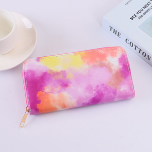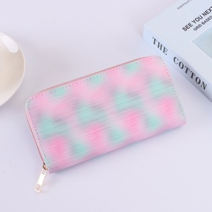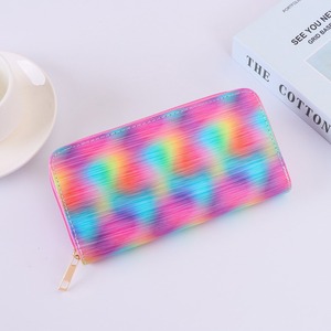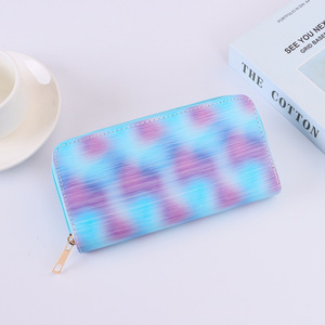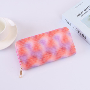现货新款女式大容量渐变简约潮酷收纳便携式拉链钱包彩色手挽包