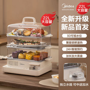 美的电蒸锅22升三层大容量外置加水蒸锅电蒸锅透明视窗不锈钢蒸片