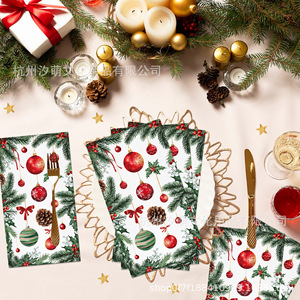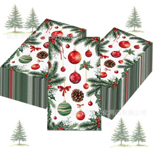 CZJ150 クリスマスベルロングペーパータオルパーティーレイアウトナプキンクリスマス松ぼっくり装飾使い捨てペーパータオル