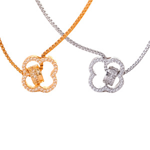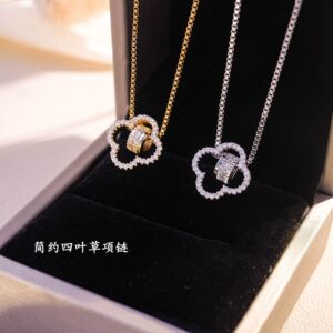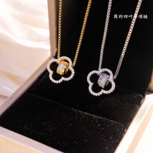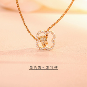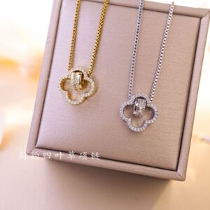 S925纯银四叶草转运珠项链女镶钻小蛮腰吊坠轻奢高级感小红书同款