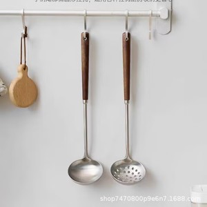 304不锈钢胡桃木柄勺子家用餐厅火锅勺日式木柄汤壳汤漏厂家批发
