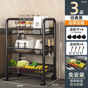 厨房置物架家用收纳架子落地多层用品大全小推车多功能蔬菜篮移动