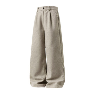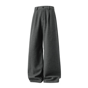 重磅质感毛呢西裤男秋季新款直筒宽松打褶休闲裤肌理感加厚长裤子