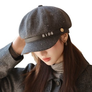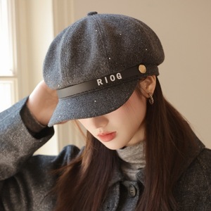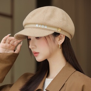 秋季帽子女大头围显脸小字母八角帽日系复古报童帽休闲百搭鸭舌帽
