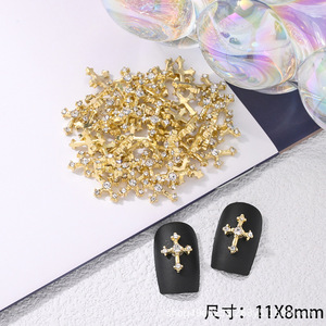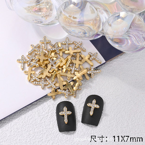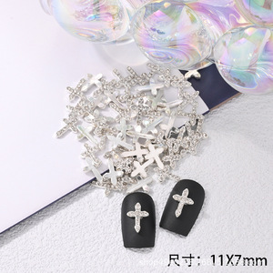 网红十字架美甲饰品镶钻指甲穿戴甲装饰美甲钻克罗心十字架钻饰品