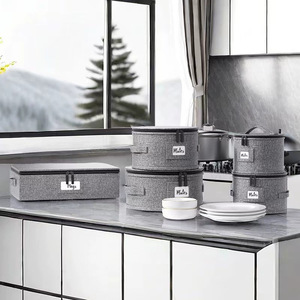 亚马逊碗碟收纳餐盘圆形拉链盖整理收纳盒厨房餐具收纳包防尘圆桶