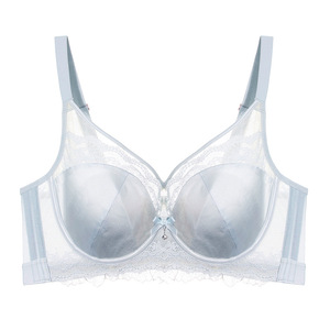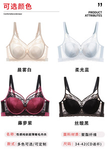 法式缎面大胸显小蕾丝内衣女 软钢圈薄上托收副乳舒适调整型文胸