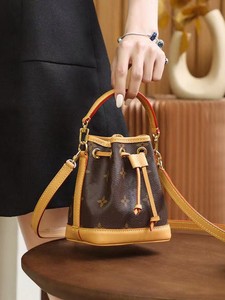 新款女士抽绳水桶包mini钱袋子经典老花单肩斜挎包时尚腋下变色皮