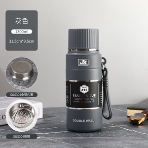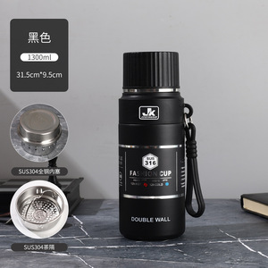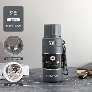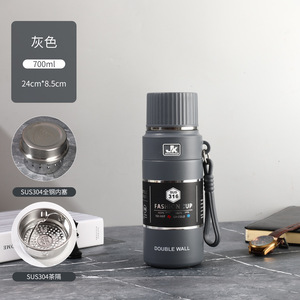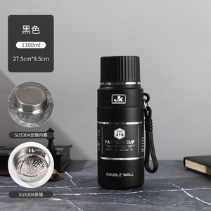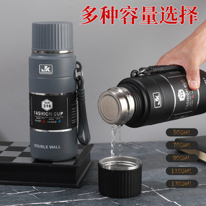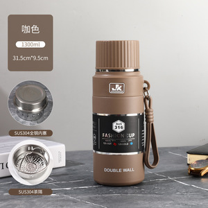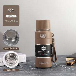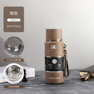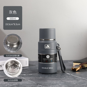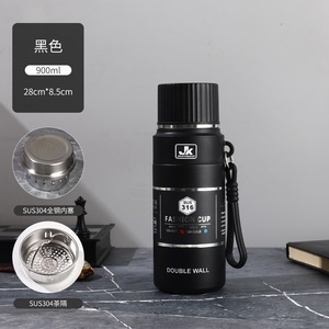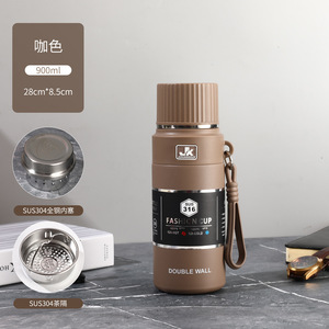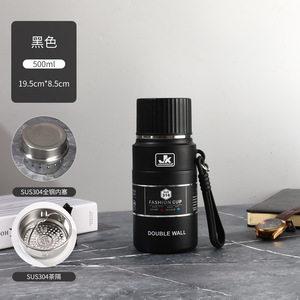 商务不锈钢保温杯男泡茶杯子带茶隔大容量便携提绳户外水壶