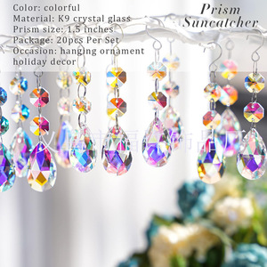 10件套网格水滴AB彩水晶棱镜吊坠太阳捕手圣诞节日派对装饰挂件