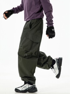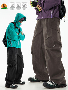 防泼水户外工装伞兵裤男秋季新款廓形宽松直筒休闲裤潮牌弯刀长裤