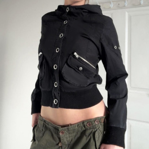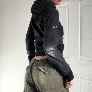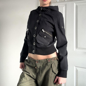 酷帅个性工装风立领连帽修身夹克美式辣妹拉链口袋黑色简约外套女
