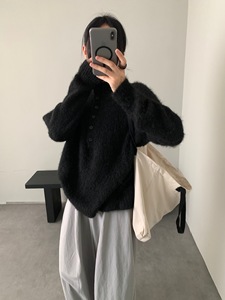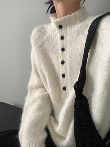 2025秋冬新款复古软糯羊毛高领纽扣针织保暖毛衣慵懒宽松百搭上衣