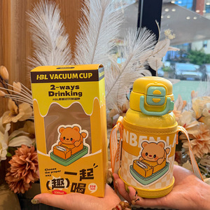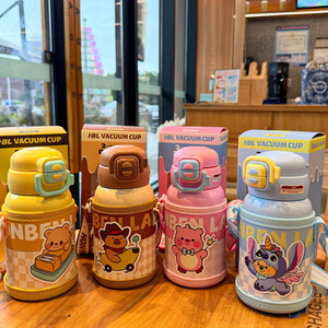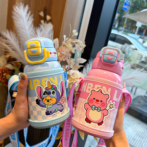 新款可爱儿童保温杯背带便携学生吸管弹跳杯316不锈钢真空保温杯