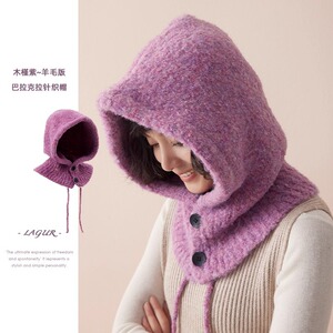 出口韩国巴拉克拉法帽女秋冬防风保暖护耳帽子围脖一体针织毛线帽