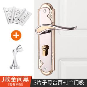B款钛黑金+3片合页+门吸-35-50mm-通用型-带钥匙★