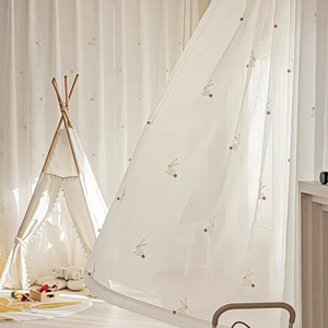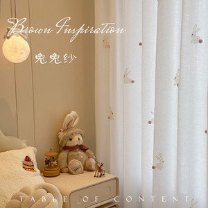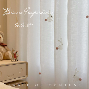 公主卡通儿童房兔子纱帘窗帘透光不透人女孩卧室飘窗绣花手工纱帘
