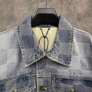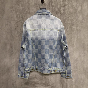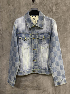 正确版本原标驴家联名款立体棋盘格水洗丹宁牛仔外套男女
