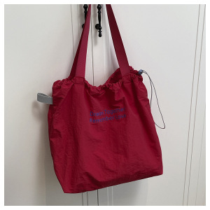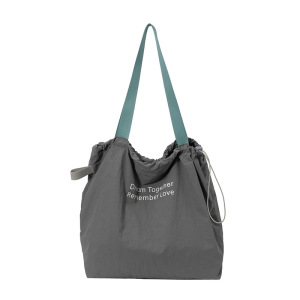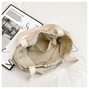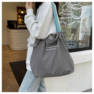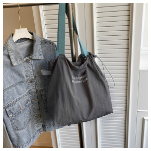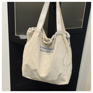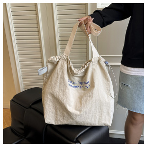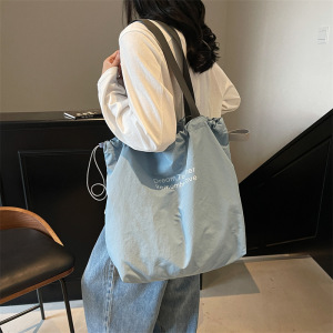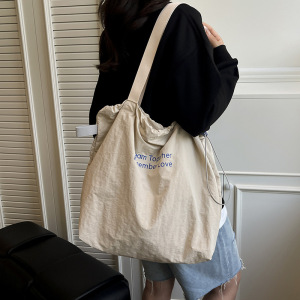 慵懒休闲大容量购物袋2025新款学生抽绳单肩包包女日常旅游帆布包