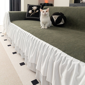 法式沙发盖布新款裙边轻奢防滑四季通用双面雪尼尔提花沙发巾套罩