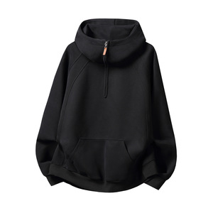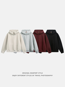 重磅美式半拉链连帽卫衣男女秋冬立体分割半高领纯色情侣帽衫外套