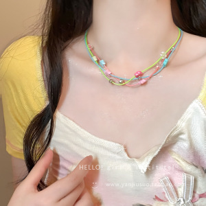 多巴胺彩色星星吊坠项链女夏天甜酷设计感锁骨链小众叠戴颈链配饰