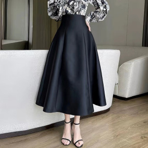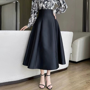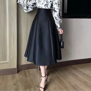 黑色赫本风半身裙女中长款秋冬新款高腰显瘦字裙气质蓬蓬裙伞裙