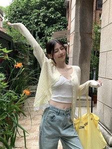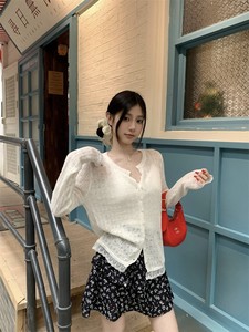 夏季薄款针织防晒外搭温柔蕾丝花边外套韩系镂空慵懒风长袖上衣女