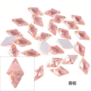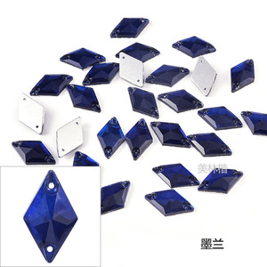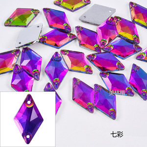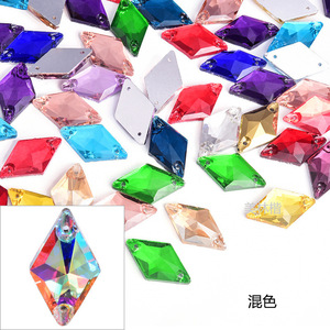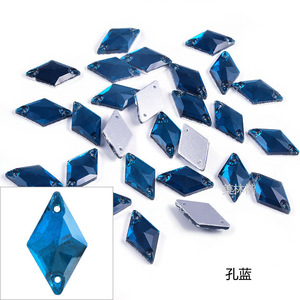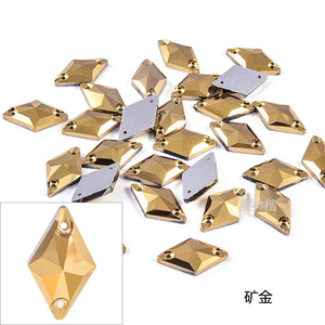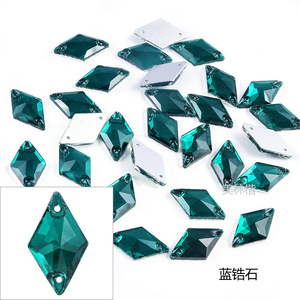 菱形手缝钻玻璃水晶平底双孔贴钻服饰婚纱辅料配件DIY手工饰品