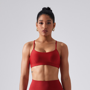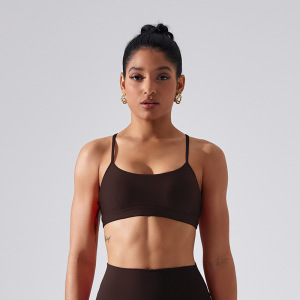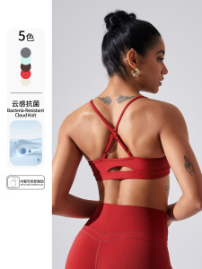 跨境运动内衣带胸垫瑜伽服上衣可调节裸感抗菌背心细带健身美背女