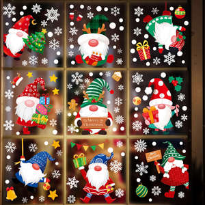 跨境新款圣诞节装饰圣诞老人雪人派对装饰麋鹿雪花静电贴可定制