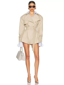 25早秋新品 纽约摩登时髦英伦经典风衣造型 浅卡其收腰连体短裤