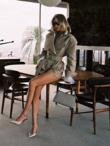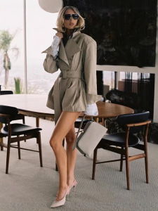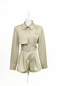 摩登时髦英伦经典风衣造型 浅卡其收腰连体短裤